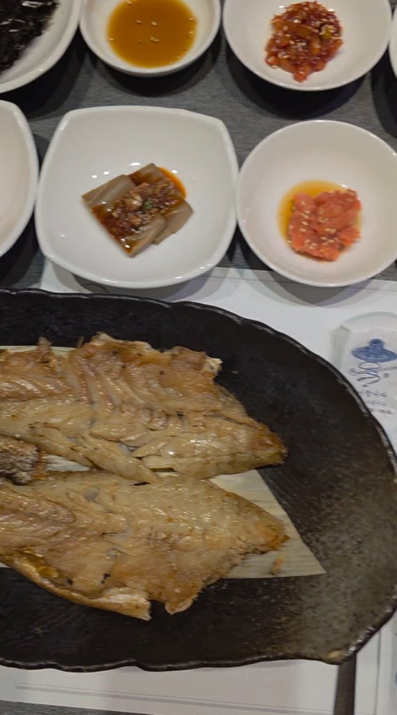 Main course: 1 whole grilled mackerel (godeungeo gui) Accompaniments: